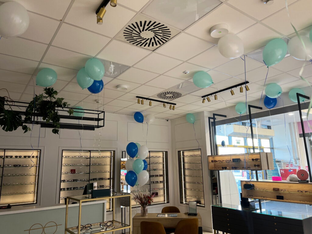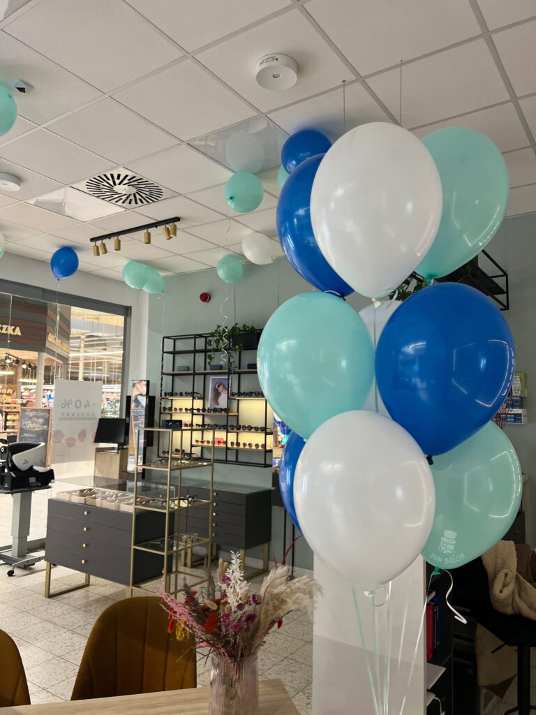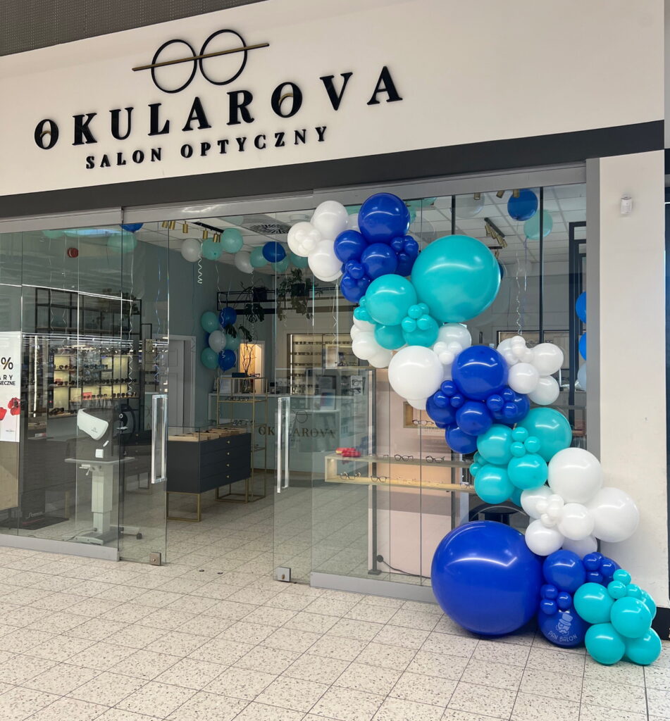 Dekoracje balonowe zostały zaprojektowane tak, aby w naturalny sposób przyciągać uwagę odwiedzających, a jednocześnie wpisywać się w estetykę nowoczesnego salonu optycznego. Tego typu dekoracje eventowe doskonale sprawdzają się podczas akcji promocyjnych w galeriach handlowych, gdzie kluczowe znaczenie ma wyróżnienie się w przestrzeni wspólnej.