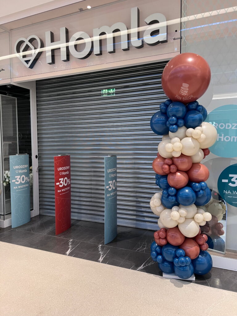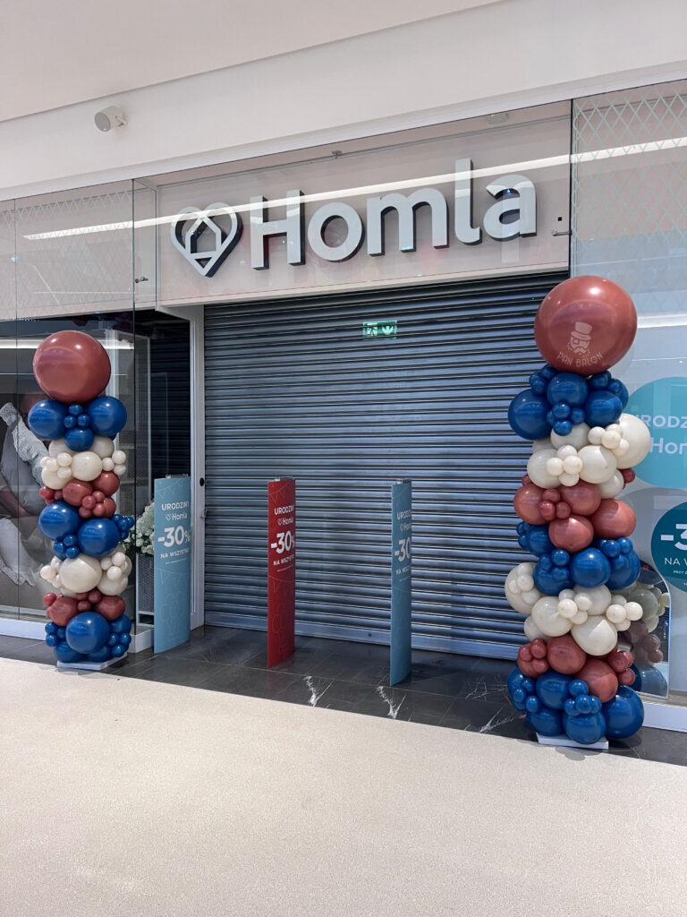 Projekt dla marki Homla to kolejny przykład, że dekoracje firmowe mogą skutecznie wspierać komunikację marki w wielu lokalizacjach jednocześnie. Jako profesjonalna firma balonowa realizujemy dekoracje balonowe Polska dla sieci handlowych i klientów korporacyjnych, dbając o spójność wizualną oraz terminowość.